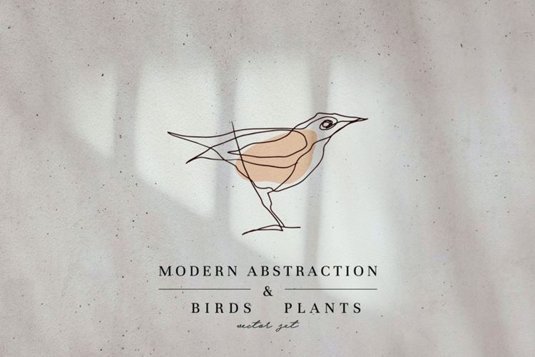 现代抽象鸟类花卉线稿轮廓矢量素材合辑 Modern Abst