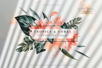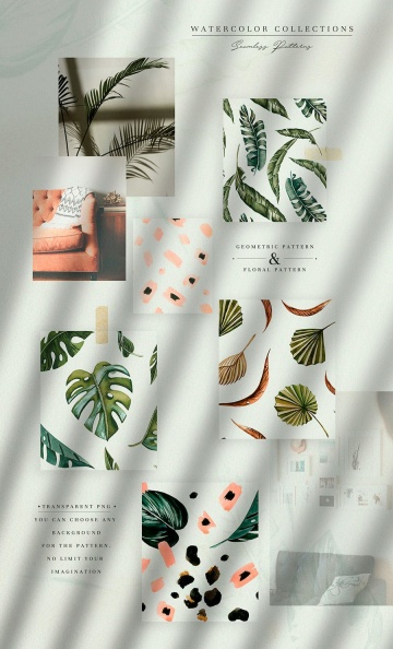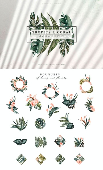 水彩手绘珊瑚龟背竹棕榈树热带植物花卉素材合辑 Tropics