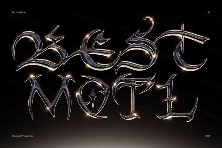 图穷联素材库 » 未来派酸性艺术彩色镀铬金属文本效果PS模板 Chrome T
