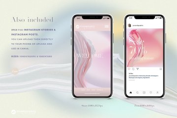 该套装还包括适用于Instagram 帖子和 Instagram 故事的大小的 JPG 图像,您可以将这些图像直接上传到手机或任何社交媒体应用程序(例如Canva),并用作营销背景。