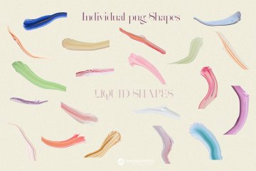 60 个PNG 单个形状,包括液体形状和抽象元素 -透明背景和粒状纹理