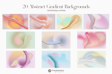 我很高兴向您介绍可爱的Ethereal Gradient Backgrounds一组带有抽象液体元素的彩色背景。在这个集合中,你会发现 20 个高分辨率背景,在各种美丽的颜色组合中很好地纹理,这些颜色组合也是可编辑的(在 Adobe Photoshop 中)。我还包含了 60 个单独的 PNG 元素,因此您可以完全有创意并提出自己独特的设计:)