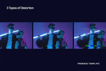 首先,有一个闪烁的故障屏幕,用不匹配的线条切割,在3 种可用样式中随机左右移动。决定最接近您内心的变体,然后继续在6 种带有渐变的配色方案之间切换,这有助于整体照片变形。令人难忘的是,您获得的所有图像都可能成为海报设计、产品演示照片、广告、网站横幅或可打印材料,如邀请函、传单、卡片等。