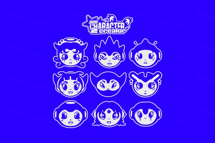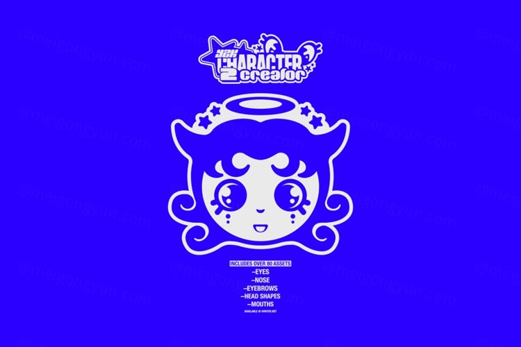 图穷联素材库 » Y2k复古千禧风迷幻未来感卡通人物五官角色创建矢量素材包 Y