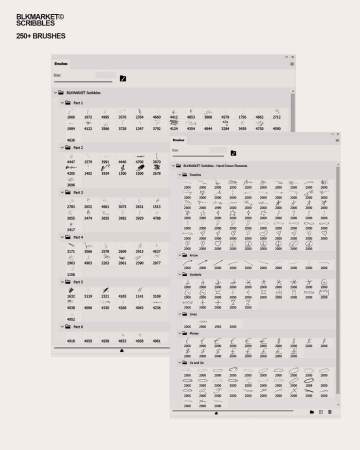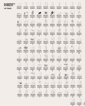 乱七八糟的纹理。总共超过 250 个元素,基本上你在缩略图中看到的就是你所得到的。各种涂鸦和鸡划痕、涂鸦和符号的集合。手绘然后由专业人员使用非常好的扫描仪进行扫描。非常适合初学者,只需将包含的图像文件拖到任何设计程序中即可使用。Scribbles 包括 .PNG 和画笔格式,无需额外费用。画笔为 .abr 格式,兼容 Photoshop、Affinity、Procreate 等。