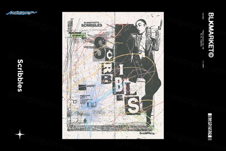 图穷联素材库 » 250+复古仿旧设计乱七八糟的涂鸦划痕笔画符号手稿设计装饰纹