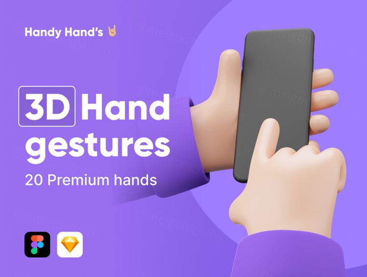 使用在 Blender 上创建的 3D 手,为您的下一个项目带来人性化的一面。非常适合您的着陆页、应用程序、演示文稿和其他项目。