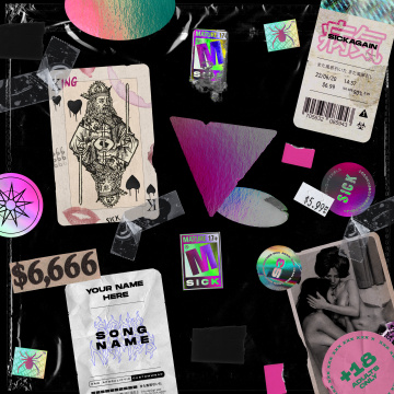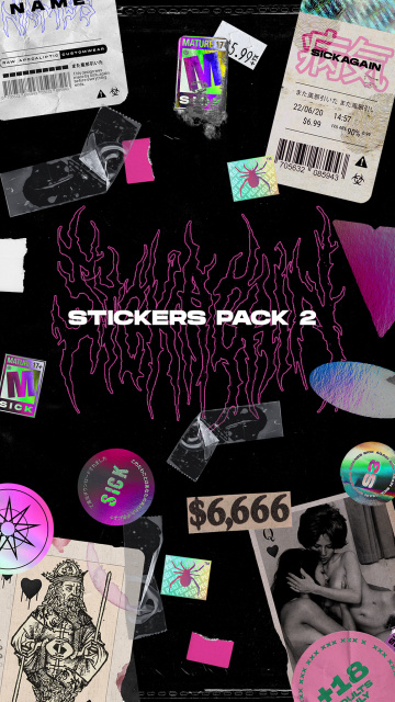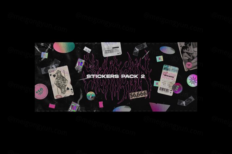 图穷联素材库 » 新复古酸性艺术颓废贴纸镀铬镭射标签贴纸装饰设计素材 Stic