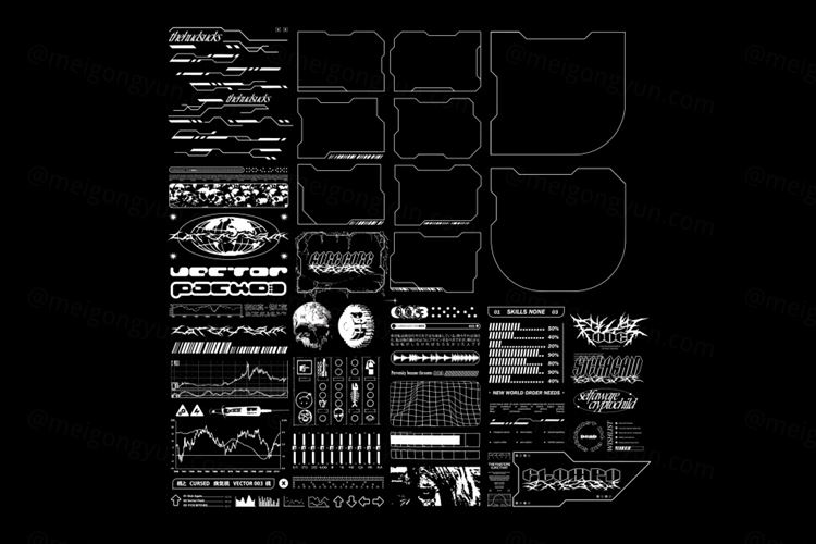 图穷联素材库 » 未来派赛博朋克酸性艺术机能科幻设计装饰元素合集包 SICK