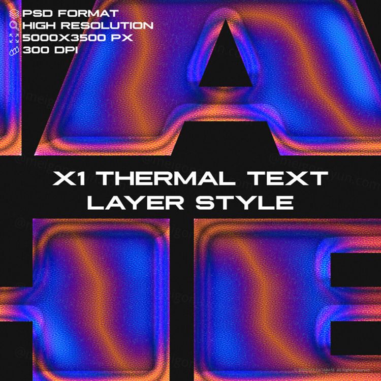 图穷联素材库 » 潮流热敏感应渐变立体字特效文本样式PSD模板 X1 Ther