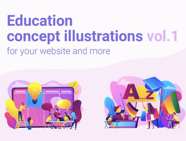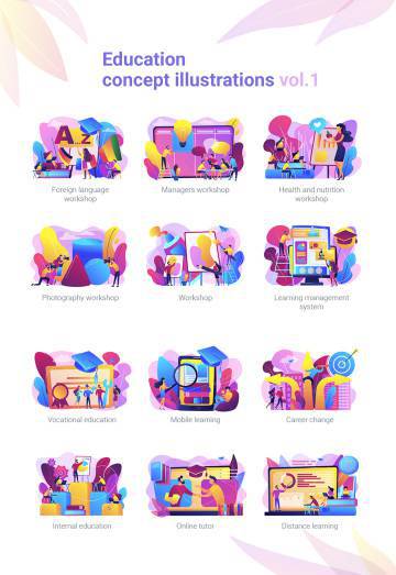 图穷联素材库 » 12款教育创意教育概念UI插画素材 紫罗兰 Education concept