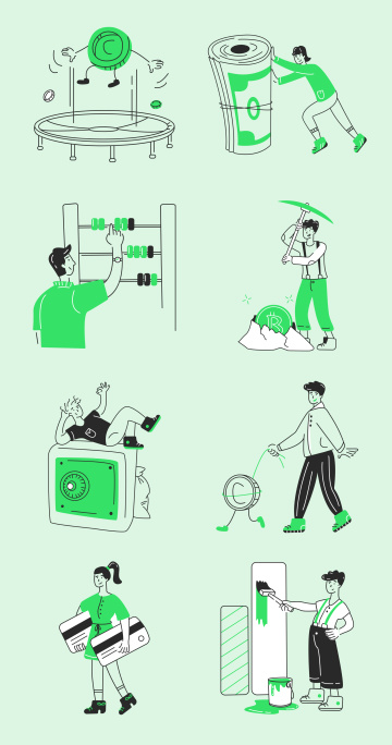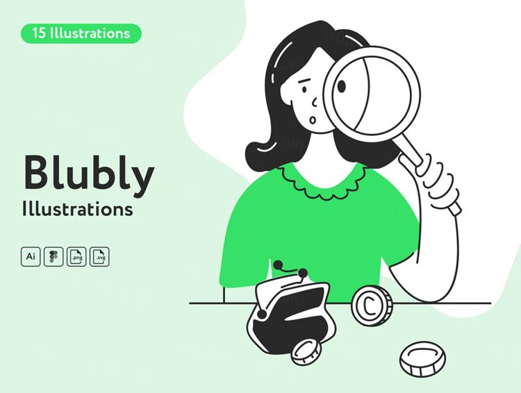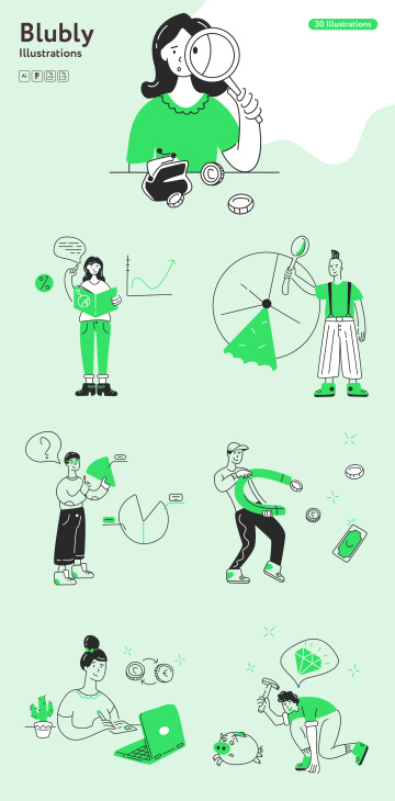 图穷联素材库 » 15幅极简金融理财投资场景主题手绘矢量插画素材 Blubly