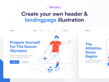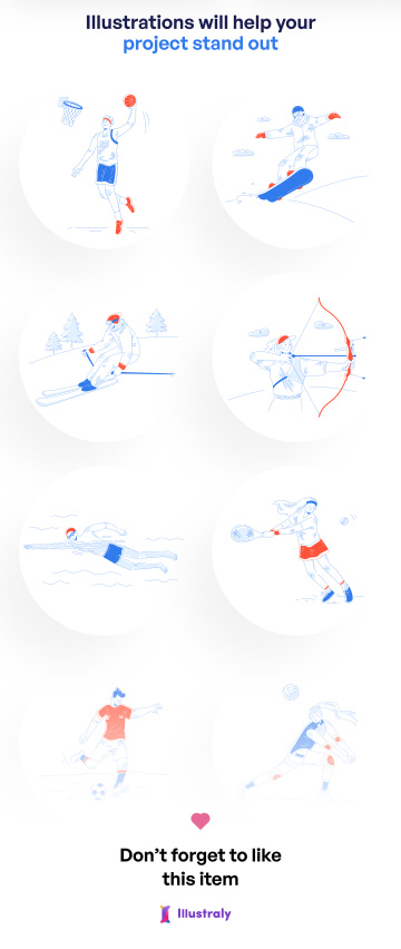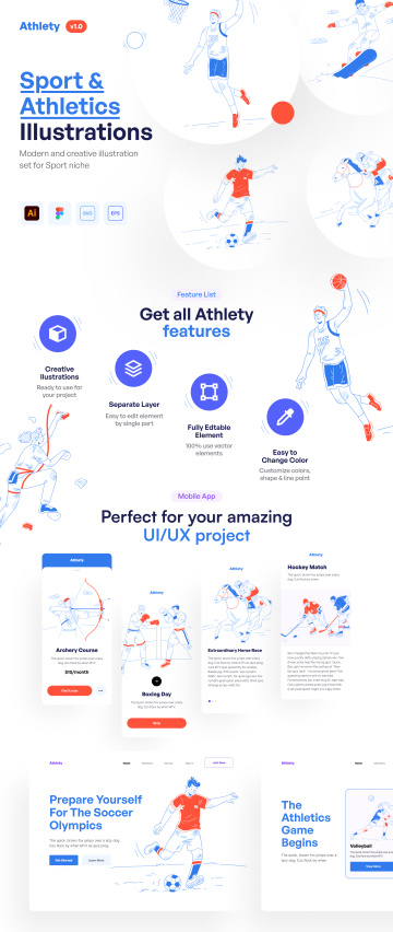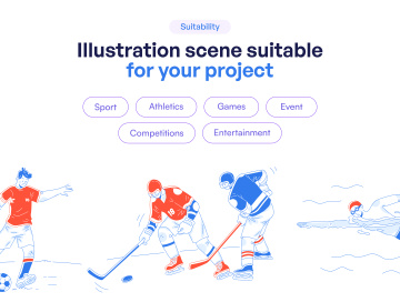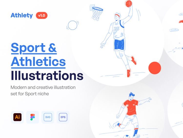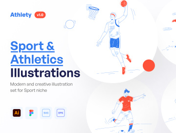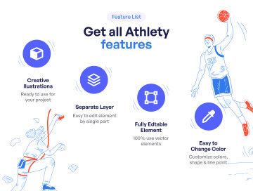 Athlety 是一组适用于任何体育和田径领域的自定义插图。制作完全分层和分离的矢量对象。非常适合 UI/UX 设计、演示、广告等。