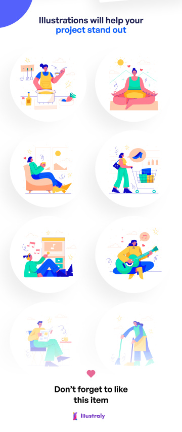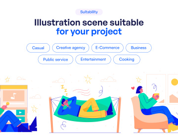 图穷联素材库 » 创意居家休闲日常生活场景主题插画素材 Casual Dai