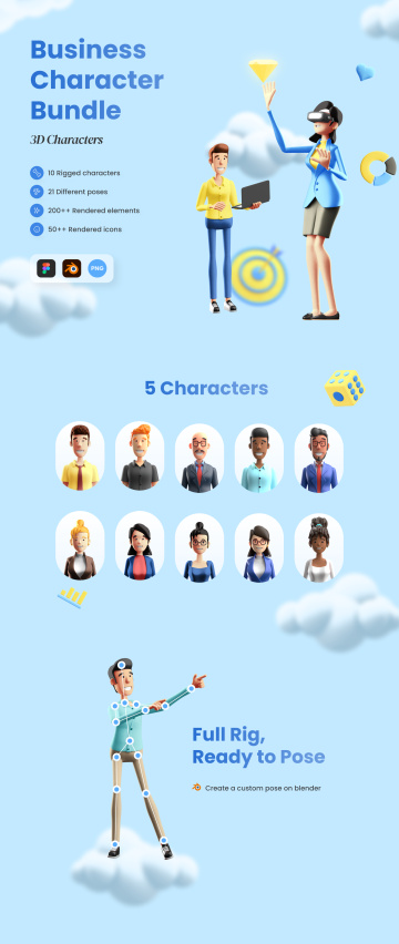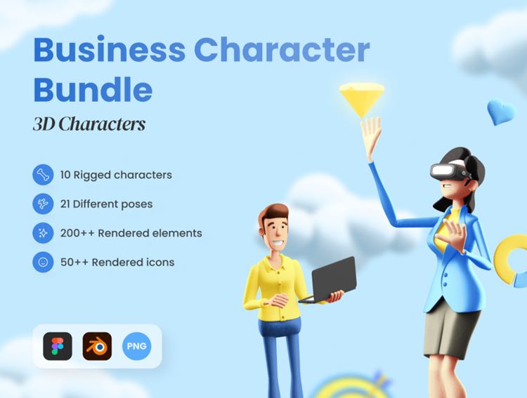 图穷联素材库 » 高质量Blender三维渲染商务工作人员卡通形象3D插画素材
