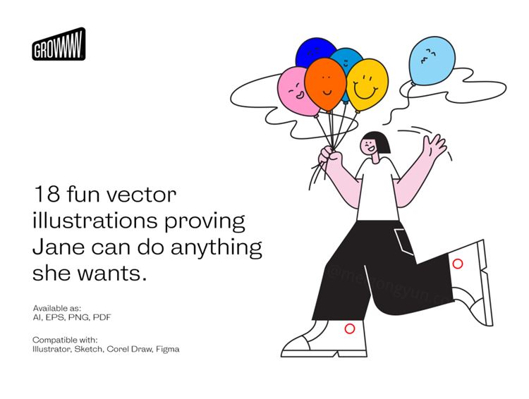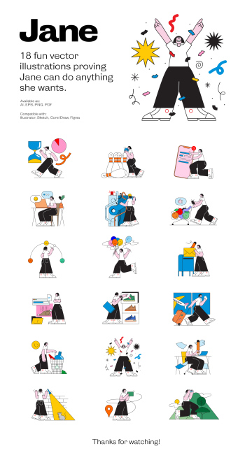 18 个有趣的矢量插图证明 Jane 可以做任何她想做的事。