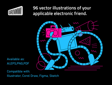 图穷联素材库 » 96个另类创意电子机器人人类电子朋友场景插画素材 Circu