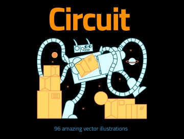 96个另类创意电子机器人人类电子朋友场景插画素材 Circu