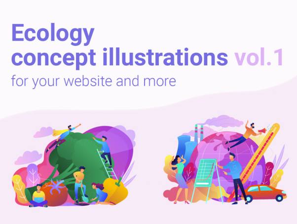 图穷联素材库 » 6个绿色环保生活概念矢量插画素材 Ecology concept illustr
