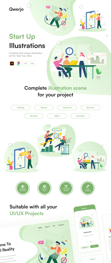 启动 Illustartion 套件,带有多个可以移动和调整的姿势的插图。非常适合 UI/UX 设计、演示、广告等。