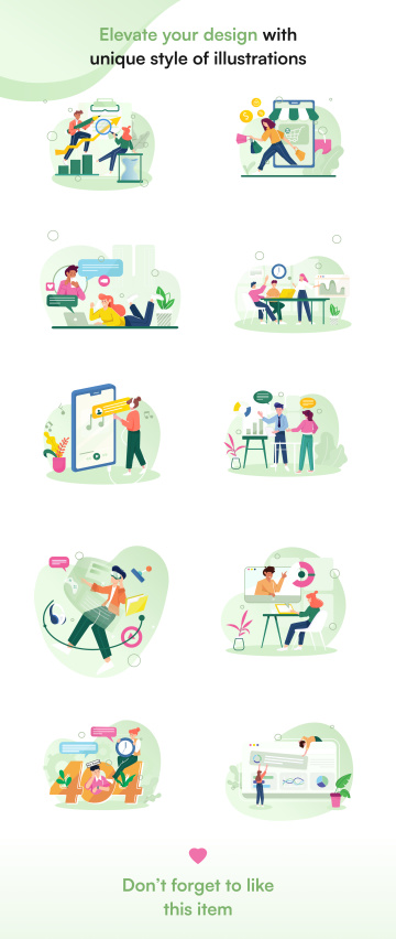 100% 矢量可编辑和可扩展。颜色很容易改变。每个插图都有组织,命名且非常易于使用。