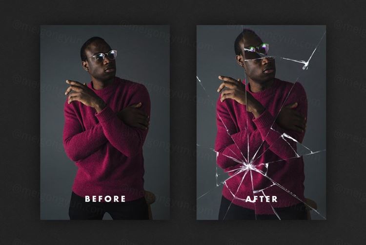 图穷联素材库 » 酷炫艺术破裂玻璃效果图片艺术照PS快速生成模板 Damage