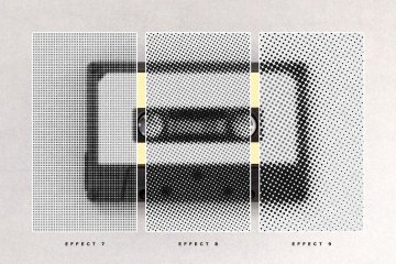 这个包提供了九种不同的半色调照片效果——既专业品质又易于应用。修改半色调网点大小和颜色通道角度偏移的大小,它们提供了适合您尝试使用的几乎任何图像的多样性。为您的海报设计、数字拼贴画、编辑信息图表、排版组合、广告、音乐专辑和书籍封面添加精确创建的半色调效果。