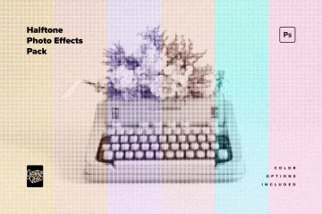 图穷联素材库 » 新复古彩色半色调网点打印图片效果PSD模板素材 Halfto