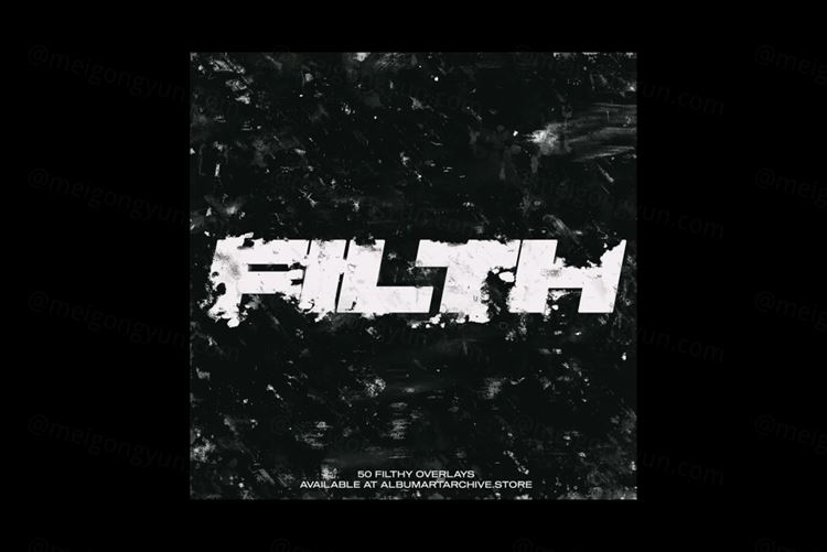 使用混合媒体和数字效果创建的 50 个污垢和垃圾覆盖。在 Photoshop 或任何其他支持 PNG 的设计软件中轻松将任何 PNG 叠加到您的作品上。