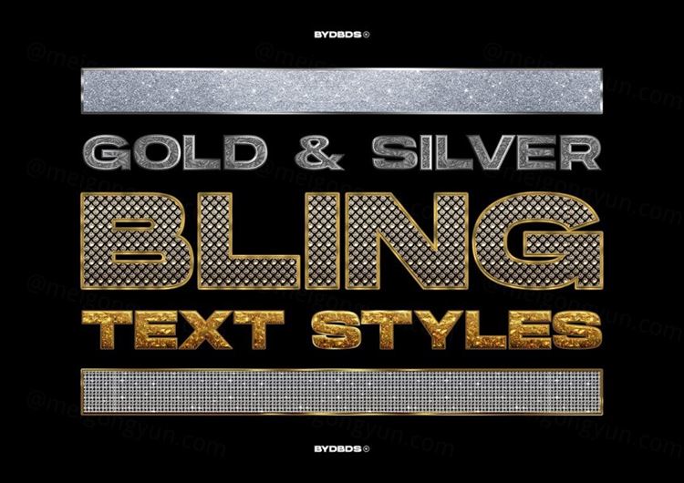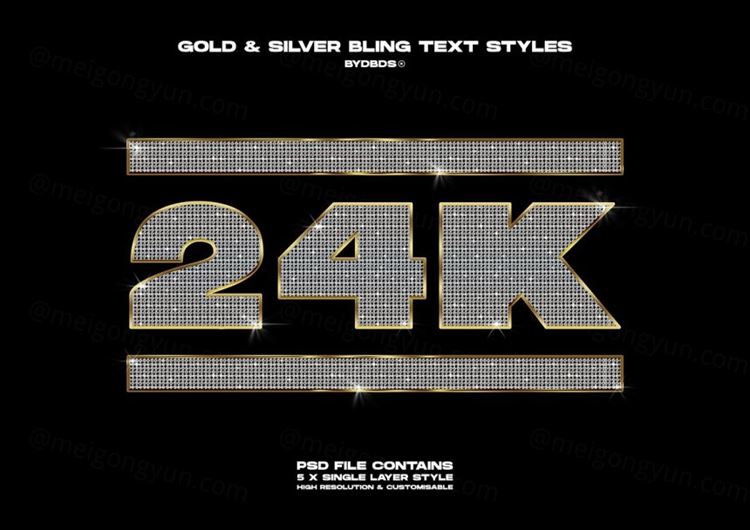 图穷联素材库 » 钻石黄金镶边电影立体字文本样式PSD模板 Gold Dia