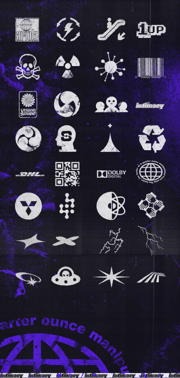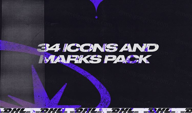 这个包包括 34 种不同的 grunge 图标和各种品牌标志。该项目被制作成一个高分辨率的、详细的工具供个人使用。在您的艺术品、Instagram、设计、网站等中使用它们。