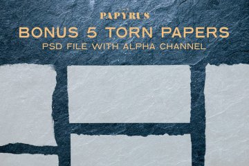 带有 Alpha 通道(透明度)的 5 张撕裂纸张的 PSD