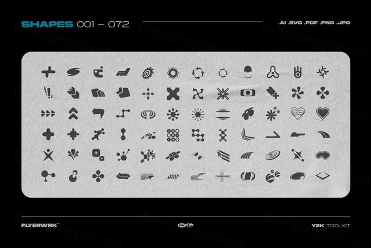 潮流抽象图形装饰元素Y2K千禧风设计风格素材工具包 FLYE