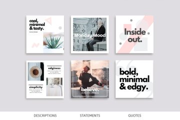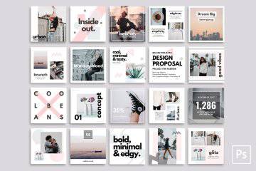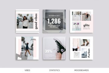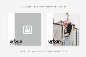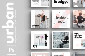 现代,简约和前卫。超时尚的“Urban”包包括专为社交媒体渠道设计的Photoshop模板。适合时尚品牌,博主,室内设计师,艺术家,音乐家和其他许多人。