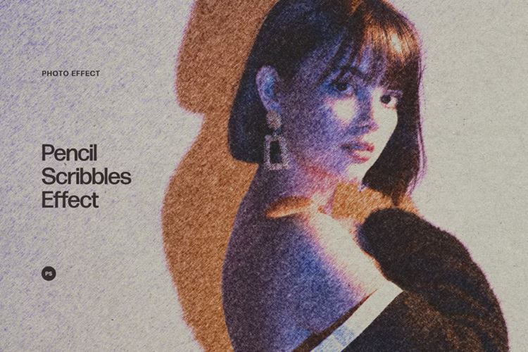 图穷联素材库 » 高质量彩色铅笔图片涂鸦效果PSD模板 Pencil Scri