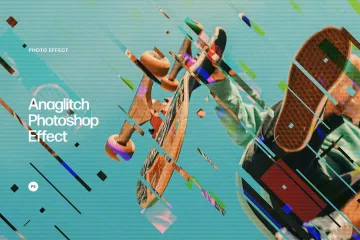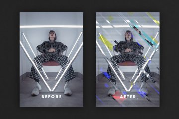图穷联素材库 » 高质量几何形状方块故障艺术照片特效抽象海报PSD模板 Ana
