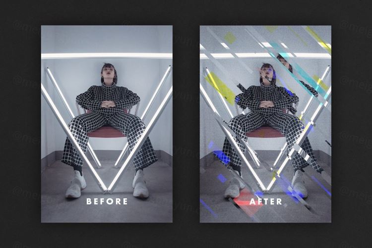 高质量几何形状方块故障艺术照片特效抽象海报PSD模板 Ana