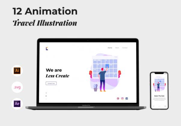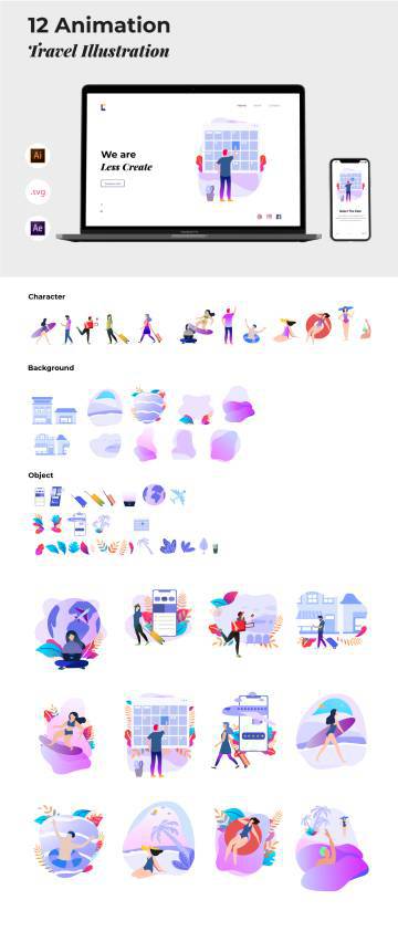 12 Animate Illustraion Travel使用After Effects和Illustrator创建,使其真正可用于移动应用和网站设计。您可以使用此动画工具包使您的应用程序更有趣,并为UI交互添加一些乐趣。