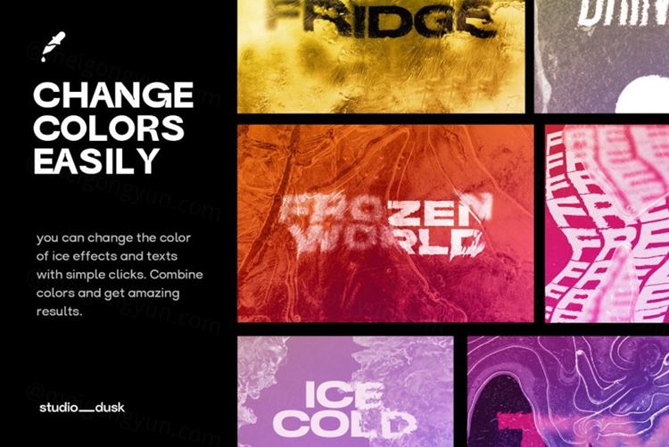 冰箱是 Photoshop CC 的 10 个 forzen 文本和徽标效果包。只需单击即可替换您的文本、版式或徽标,并在几秒钟内获得惊人的结果。创建精美的海报、音乐专辑艺术、社交媒体帖子、故事、营销横幅、展示模型等。6000 x 4000 像素的高分辨率可在任何屏幕、纸张或产品上显示完美的细节。