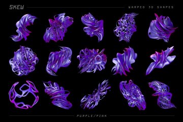 图穷联素材库 » 105个扭曲异形金属3D形状抽象素材 Skew: 105 W