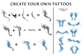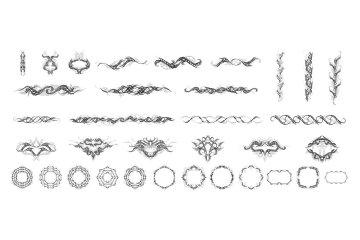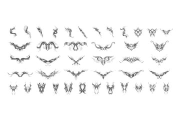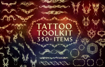 满足您对纹身设计需求的工具包!拥有超过 350 种不同的纹身设计,包括零件、基本纹身、翅膀、框架、彩色设计等等,这个捆绑包为您提供了很大的灵活性。您可以结合自己的纹身来创建适合您项目的独特设计,或者如果您有时间压力,可以使用其中一种预制设计。无论您是想为产品创建一些漂亮的装饰,还是需要用一些花哨的方式装饰文档,这个捆绑包都会在很多方面为您提供帮助。