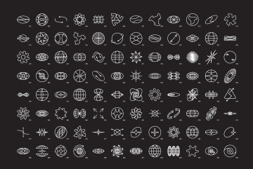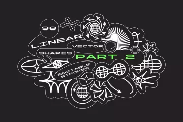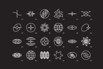 96 Linear Vector Shapes集合为您带来了基于流行图形元素(如线框地球仪、箭头、漩涡、星星和其他酸性抽象形状)的各种高品质几何形状。您可以轻松地编辑笔画的粗细、变换或重新着色每个形状 - 轻松塑造它以满足您的需求!