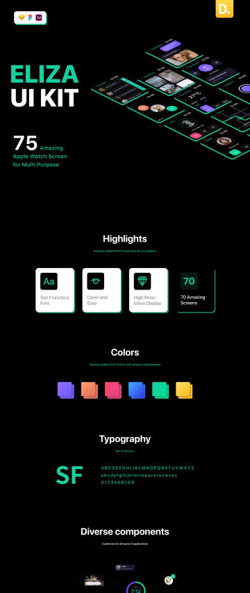 高质量运动智能手表UI界面设计模板素材 Eliza - Ap