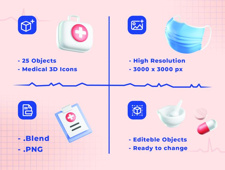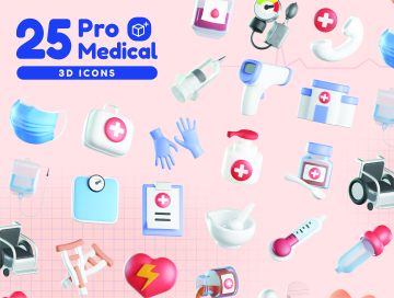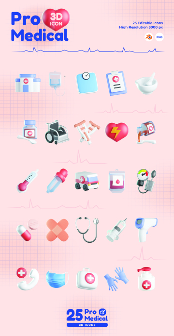 图穷联素材库 » 高质量Blender三维渲染卡通口罩额温枪医药箱医疗主题3D