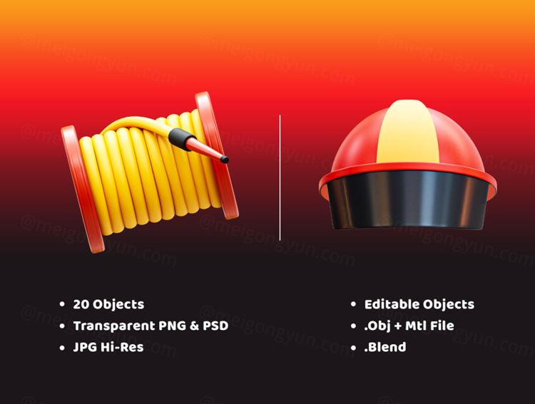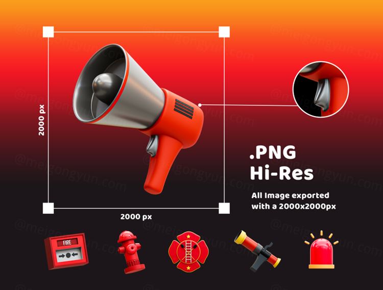 图穷联素材库 » 高质量Blender三维渲染红色灭火器消防器材主题3D图标合