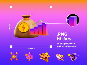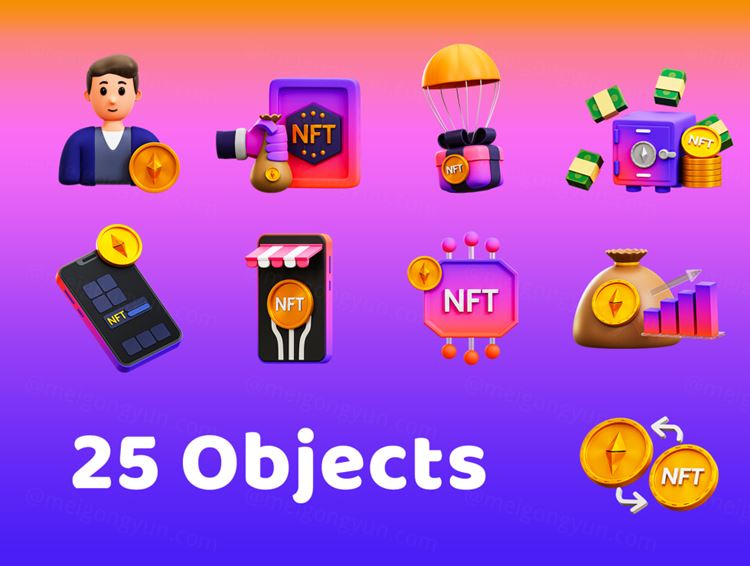 这是一个 NFT 包,包含 3d 图标,用于设计需求、动画、应用程序、UI 设计、网页设计、演示文稿、传单或海报、社交媒体广告、内容创建者等。
