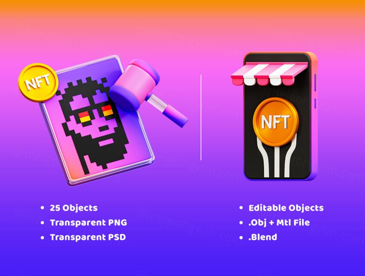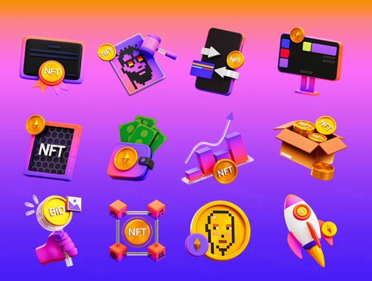 高质量Blender三维渲染NFT数字藏品资产主题3D图标合