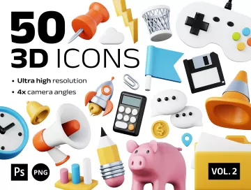 高质量3D卡通办公财务金融文具图标合辑 50 unique
