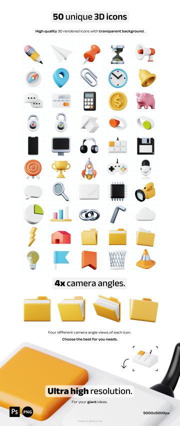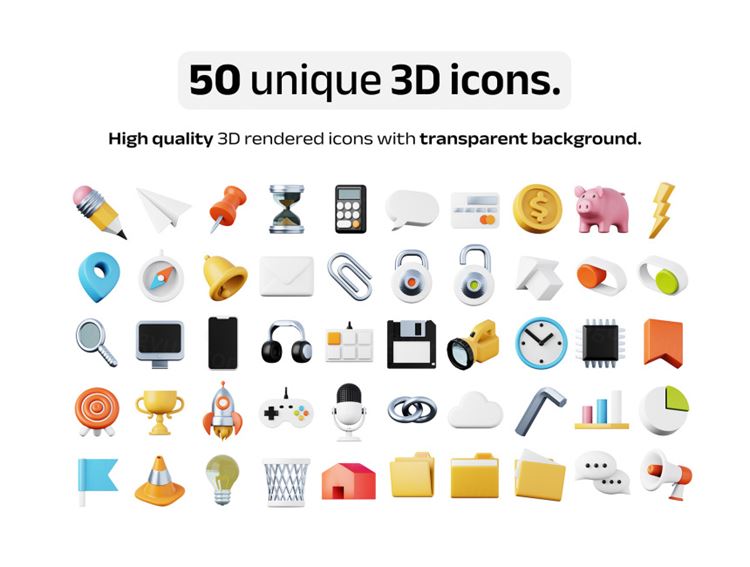 图穷联素材库 » 高质量3D卡通办公财务金融文具图标合辑 50 unique