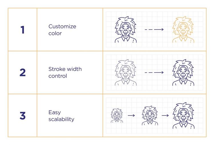 实时笔画和轮廓笔画图标可用于从 1 pt 向上适合您的设计。